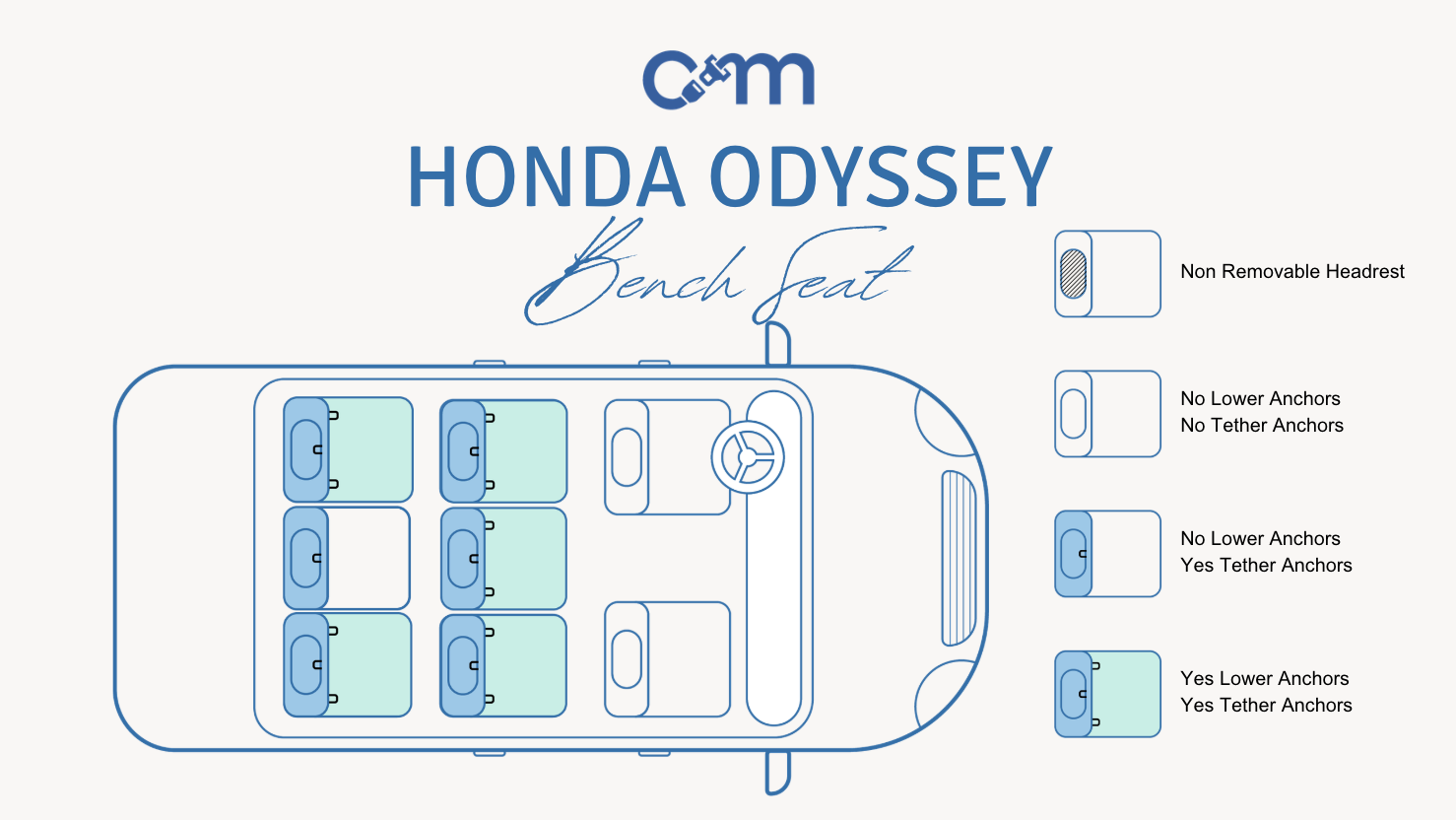 Starting off strong, Honda’s Magic Slide seats are a game changer—they move forward-backward and side-to-side on tracks, making it easy to access the third row even when car seats are installed. What sets these seats apart is that their seat belts are attached directly to them, so you can still use Magic Slide whether car seats are installed with LATCH or seat belts.