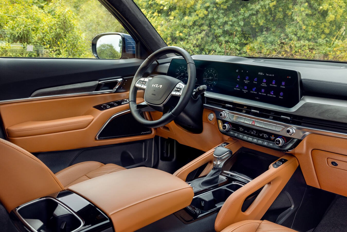 I love the combined screen—it’s curved and stunning. You can use it as a touch screen or use the quick buttons for the things you need access to most often instead of having to dig through a display. There’s wireless charging, a USB, USB-C, and 12 volts (plus one additional USB-C in the console). The X Pro has heated seats and four (yes, FOUR) cub holders within the driver’s reach. Tellurides have great tech and I’m always impressed with the safety features from Kia. So, TLDR? Still crushing on the Telluride for sure.