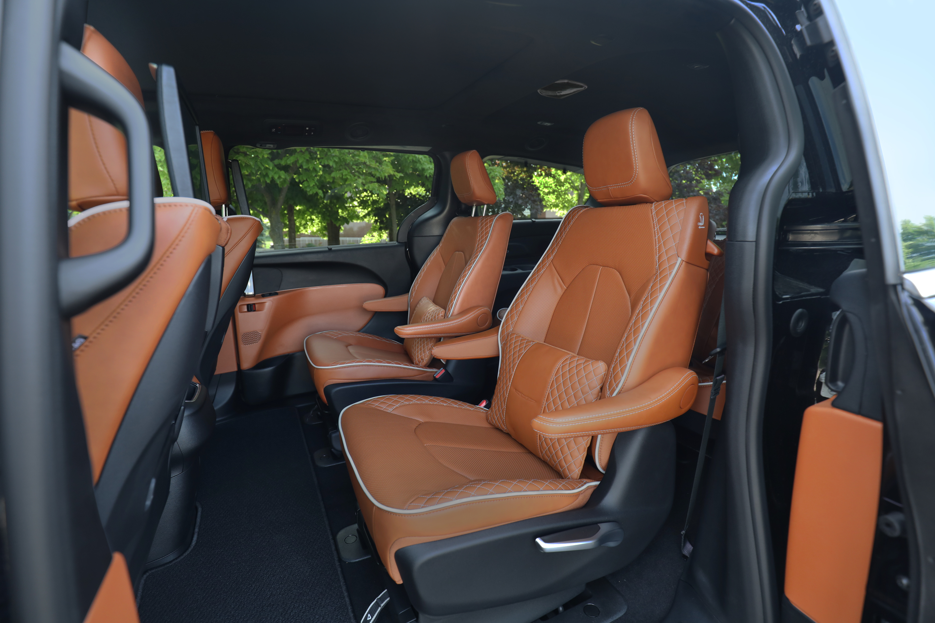 - Pinnacle-level interior feels genuinely nice: Quilted leather, contrast stitching, heated and ventilated front seats, and a true “luxury minivan” feel without sacrificing family function.